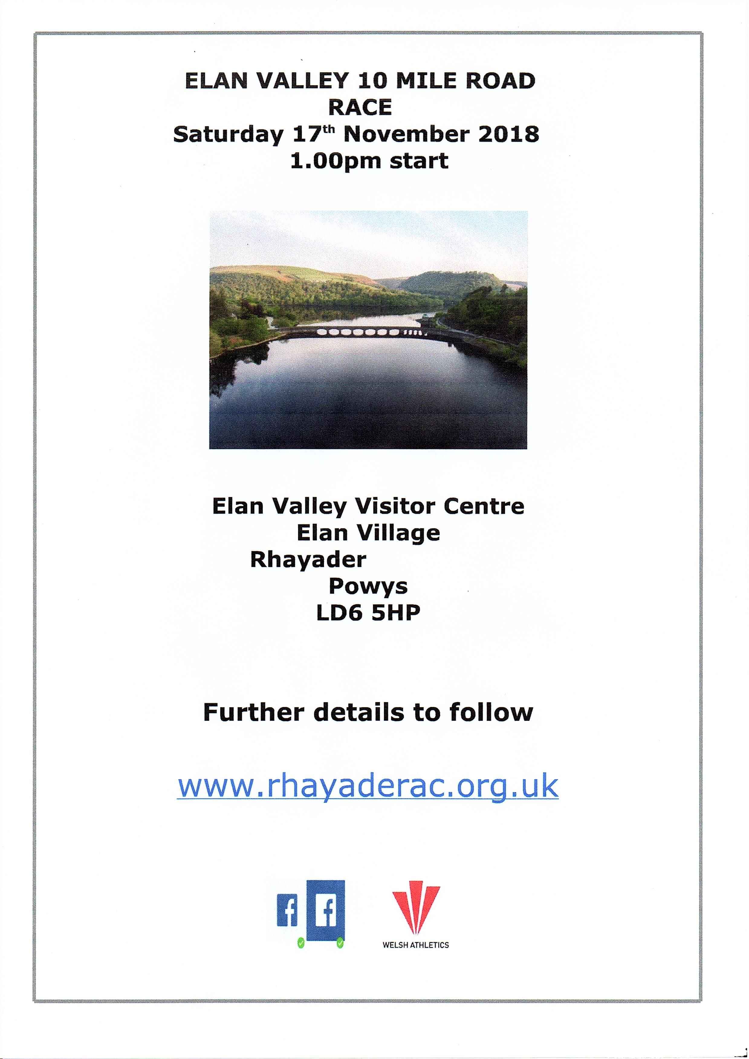 19/10/2017Results of the Elan Valley 10 Mile Race, 18/11/2017Elan Valley 10 Mile Race Results can be downloaded here Results 19/10/2017Photos of the Elan Valley 10 Mile Race, 18/11/2017Elan Valley 10 Mile Race Photos can be Viewed here Elan Valley 10 Mile 2017 Photos 11/10/2017Elan Valley 10 Mile Race, 18/11/2017